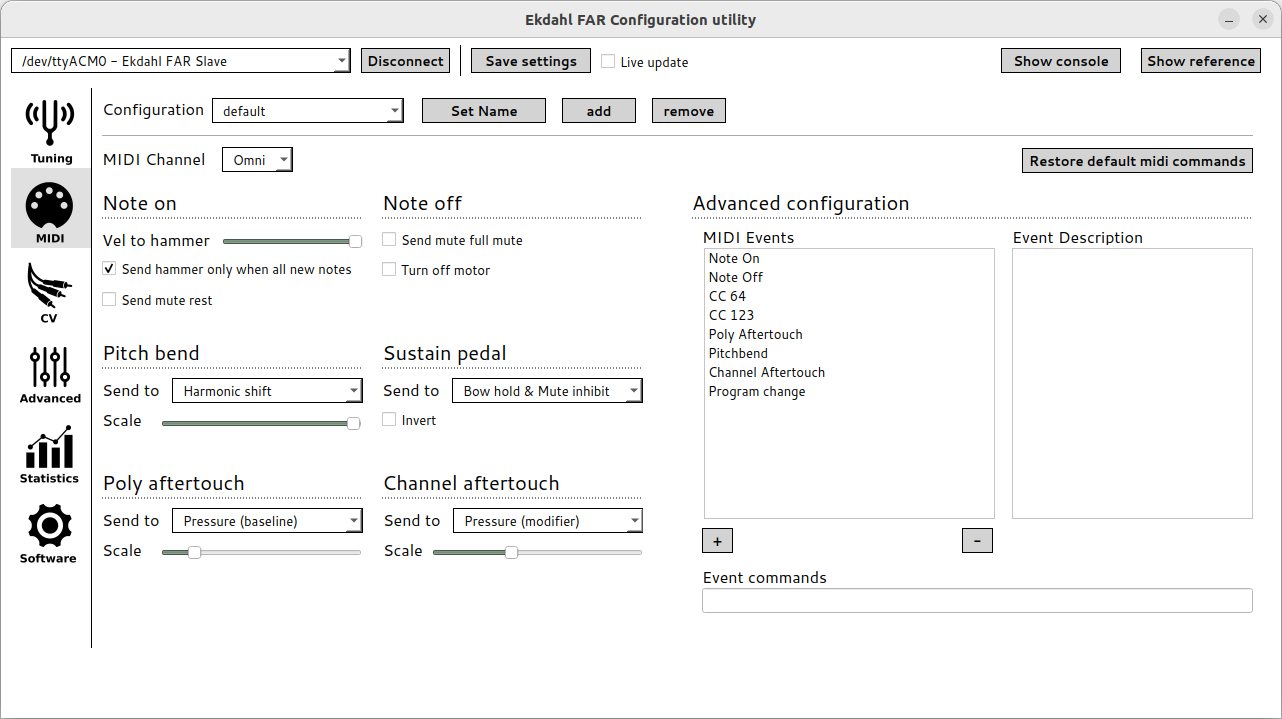Configuration utility midi tab