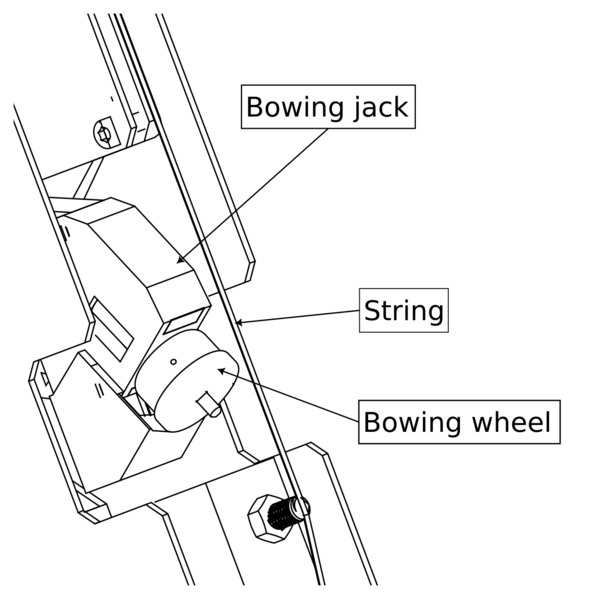 Parts of The Ekdahl FAR bowing assembly with the cover off