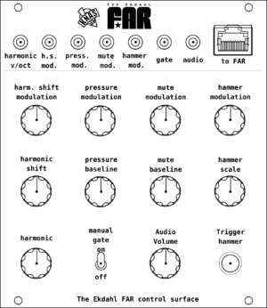 The Control Box is designed to be used as a master controller for The Ekdahl FAR in conjunction with CV, MIDI, USB, as a free improvisation controller - or all at once. Please note that the information supplied only applies to the default configuration the instrument is originally supplied with.