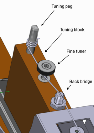 Since the instrument relies on the tuning information stored in it, this means that if the tuning of the actual string deviate by as little as a tenth of a Hertz the bowing motor speed given will not correspond to the resonant points on the string.